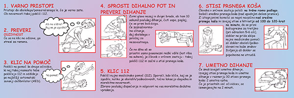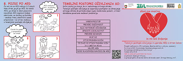 Zloženka (PDF)Stisni me močno in mi reši življenje z opisanimi temeljnimi postopki oživljanja in uporabo AED. Zloženka je last projekta Stisni me močno. Pred objavo ali tiskom je potrebno pridobiti soglasje projekta Stisni me močno.